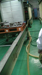 ・・意外にそっけないパイプを通って、絞りたての原酒が流れ出ています。