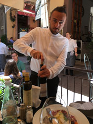 街はどこも坂道と階段だらけ、そして小道の奥にもこんな素敵なワインバーがあちこちにあります。ウエイターもイケメンでしょ。